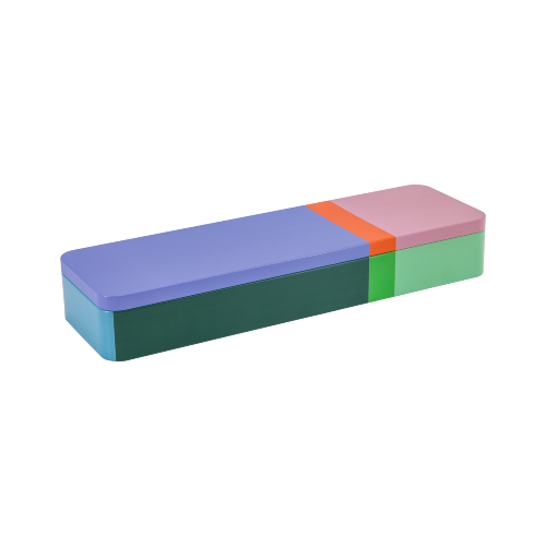 Caja de hojalata rectangular con tapa, apta para alimentos
