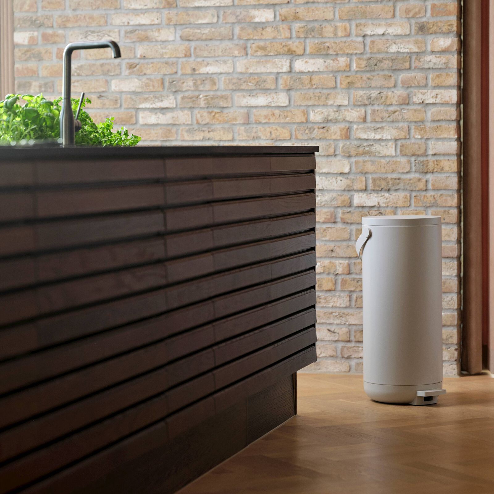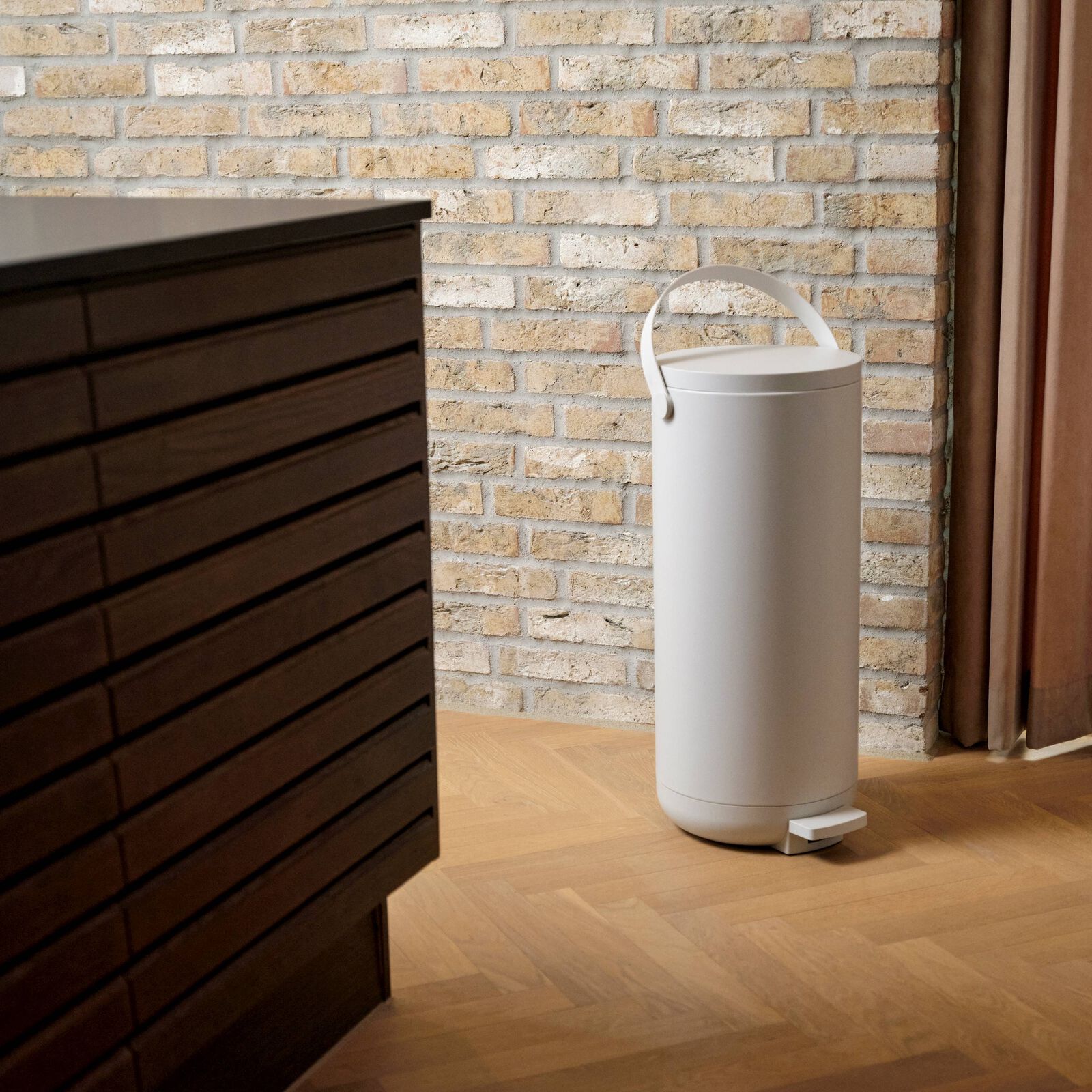 El contenedor circular tiene un práctico pedal para que puedas abrir fácilmente la tapa para tirar cosas a la basura.