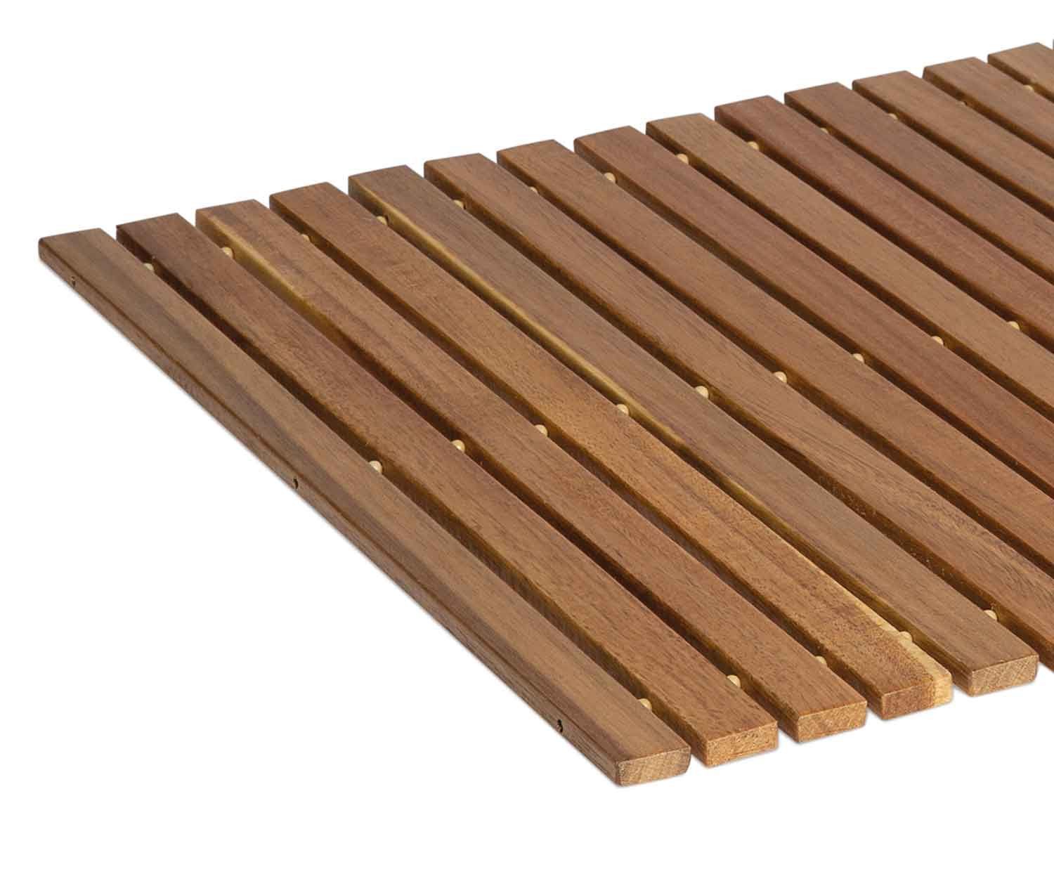 Esta alfombra de baño o base de madera se presenta, fabricada con finas lamas de madera de acacia. La fusión perfecta de funcionalidad y estilo en el cuarto de baño crea un ambiente sofisticado y acogedor. Además de ser resistente a la humedad, se puede guardar fácilmente enrollándola sobre si misma y su diseño permite mantenerla impecable con poco esfuerzo.