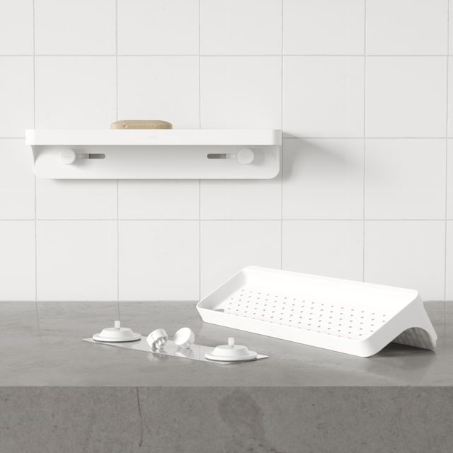 A prueba de herrumbre y con orificios de drenaje integrados, el estante adhesivo Flex está diseñado para brindar un almacenamiento elevado, ordenado y duradero.