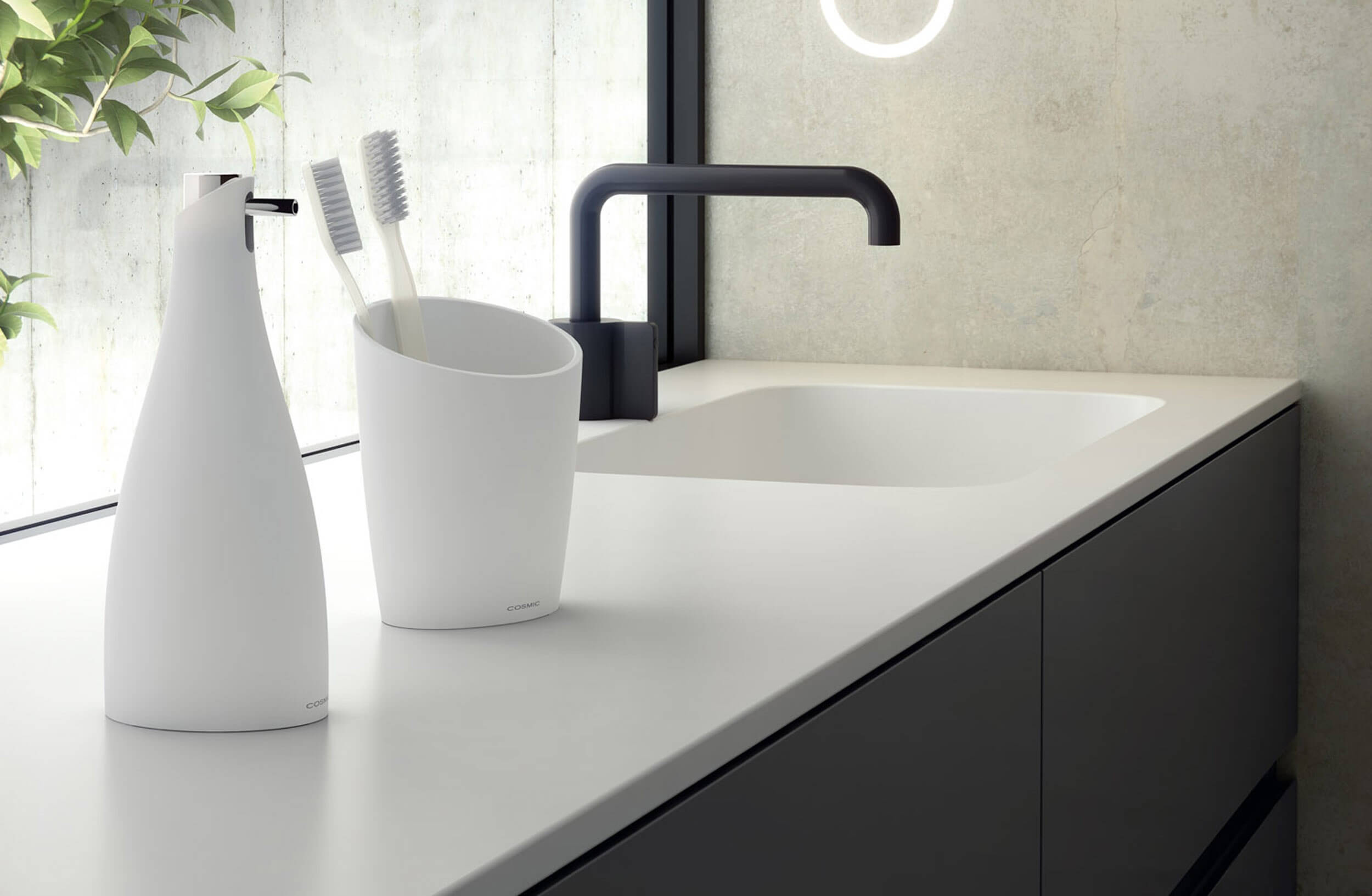 Accesorios de baño fabricados en PMMA (polimetilmetacrilato), un material muy resistente a los impactos y a los rayos UVA, manteniéndolos inalterables en el tiempo. Recubiertos de una pintura gomosa de color blanco soft que le aporta un tacto sedoso.