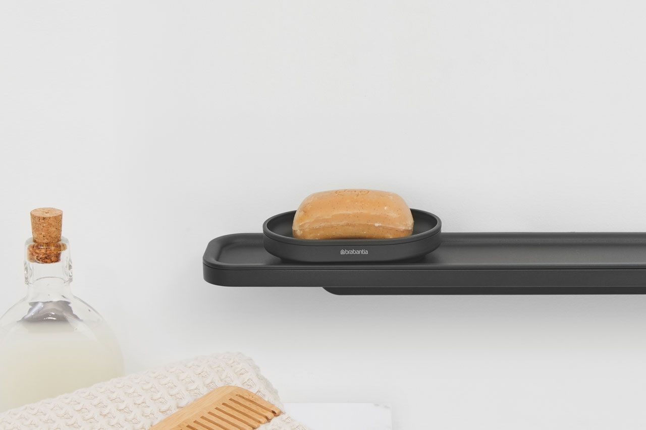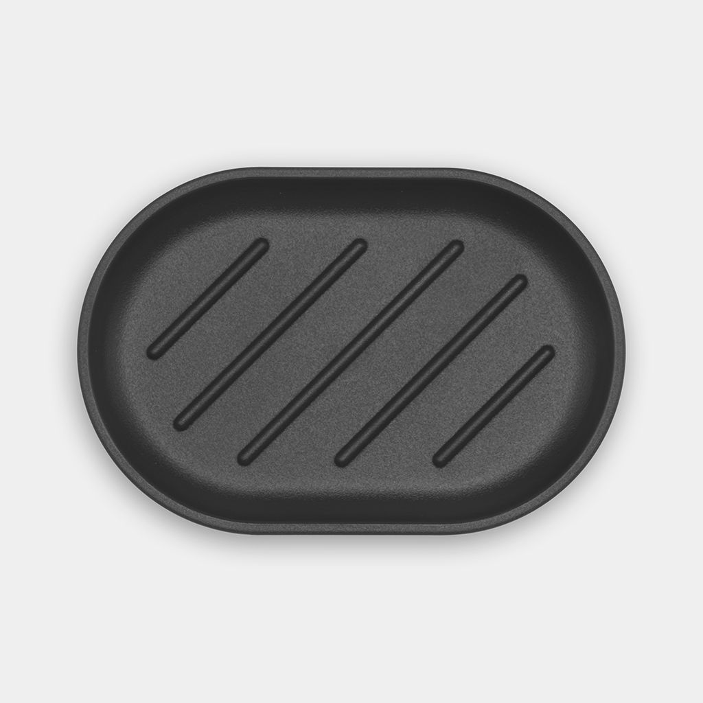 Evita que lavarte las manos se convierta en toda una odisea y hazte con esta jabonera de última generación MindSet de Brabantia en metal texturizado. Sus estrías hacen que el jabón se mantenga seco, y su gran tamaño la hace apta para una pastilla completa. Y no dejes que sofisticado diseño te engañe; sus pies antideslizantes la mantienen en su sitio. Diseñada para mantener tu jabón seco y tu lavabo limpio.
