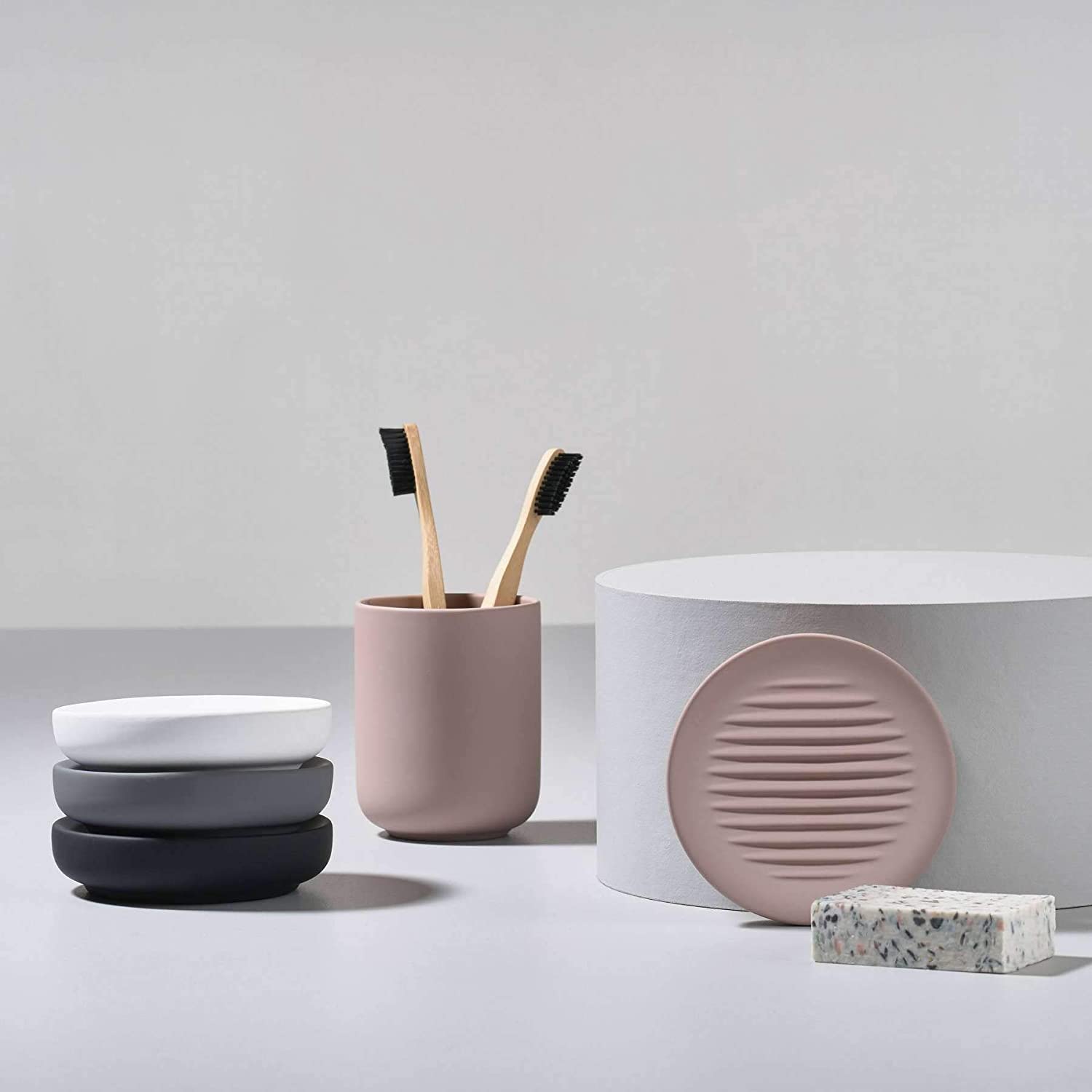 LA ATRACTIVA JABONERA UME TIENE UNA BONITA SUPERFICIE SUAVE AL TACTO Y PRÁCTICAS RANURAS PARA DEJAR ESCURRIR EL EXCESO DE AGUA. LOS COLORES COMBINAN CON LOS DEMÁS ELEMENTOS DE LA COLECCIÓN DE BAÑO UME, CREADA POR EL TRÍO DE DISEÑADORES VE2. DÍA. 12 CM, ALTURA 3 CM.