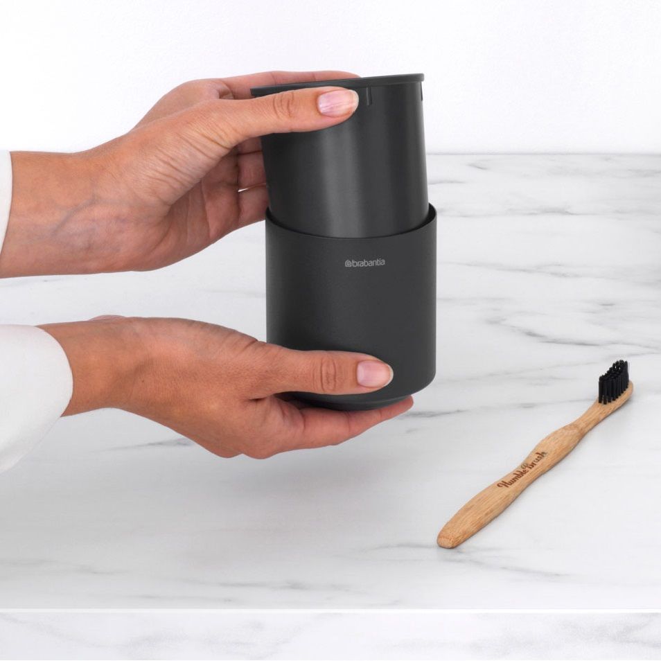 ¿Quieres tener el lavabo organizado? Este robusto y estable vaso para cepillos de metal MindSet de Brabantia guarda tus cepillos de dientes y la pasta juntos, rectos, secos y limpios. ¡Y también es perfecto para cepillos eléctricos!