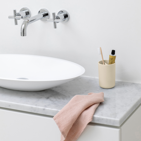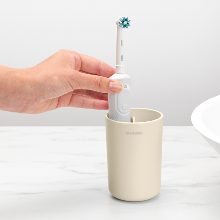 ES DIFÍCIL ENCONTRAR UN VASO PARA LOS CEPILLOS TAN ESTILOSO COMO TU BAÑO. ¡PERO ESTE ELEGANTE VASO SÍ LO ES! ROBUSTO Y ESTABLE, TIENE ESPACIO PARA LOS CEPILLOS Y LA PASTA, Y LOS MANTIENE DERECHOS, SECOS Y LIMPIOS. ¡TAMBIÑEN ES PERFECTO PARA LOS CEPILLOS ELÉCTRICOS! TE SACARÁ TU MEJOR SONRISA.