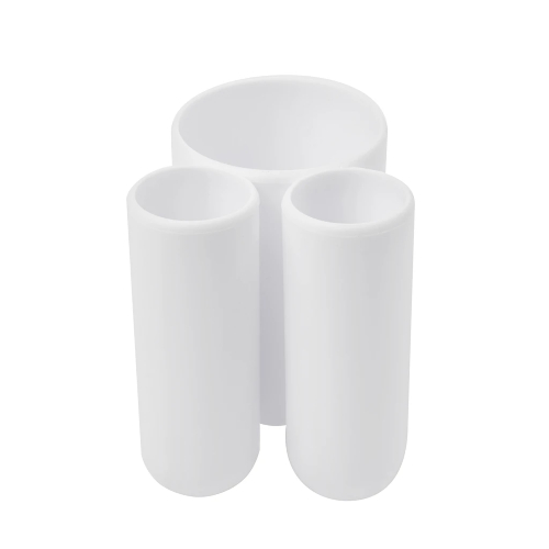 El soporte del cepillo de dientes táctil tiene tres compartimentos; uno grande para artículos voluminosos como pasta de dientes, y dos compartimentos más pequeños para cepillos de dientes de tamaño regular. Tener soportes separados ayudará a mantener sus cepillos de dientes organizados, y será menos probable que mezcle su cepillo de dientes con el de otra persona en un baño compartido. Touch está hecho de un material mate, suave al tacto, que es fácil de limpiar y altamente duradero. El acabado es lujoso y agradable a la vista.