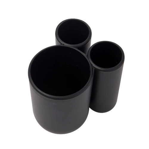 El soporte del cepillo de dientes táctil tiene tres compartimentos; uno grande para artículos voluminosos como pasta de dientes, y dos compartimentos más pequeños para cepillos de dientes de tamaño regular. Tener soportes separados ayudará a mantener sus cepillos de dientes organizados, y será menos probable que mezcle su cepillo de dientes con el de otra persona en un baño compartido. Touch está hecho de un material mate, suave al tacto, que es fácil de limpiar y altamente duradero. El acabado es lujoso y agradable a la vista.
