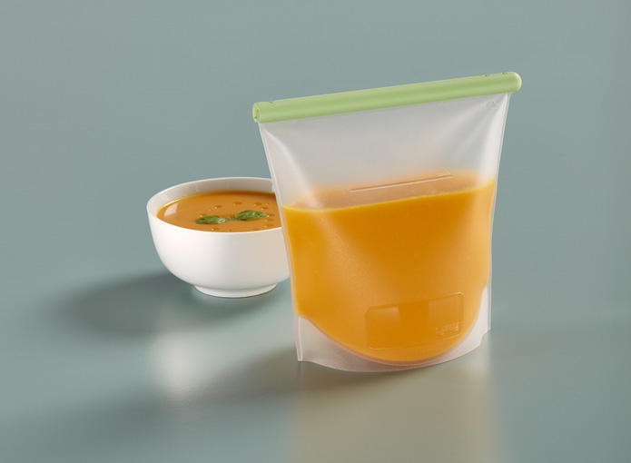 Bolsa de silicona platino de 1500 ml para almacenar y conservar herméticamente los alimentos. Reutilizable, sustituye los plásticos de un solo uso.