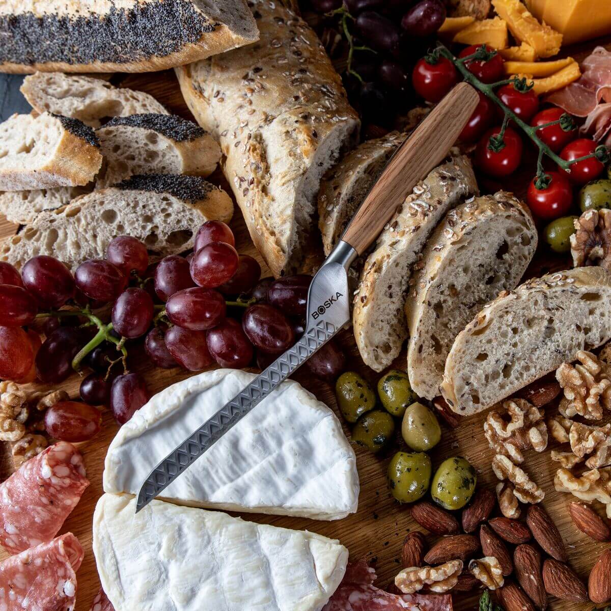 El cuchillo para queso blando Oslo+ No.1 fue desarrollado especialmente para cortar quesos blandos como Brie y mozzarella. El cuchillo es estrecho, para que haya el menor contacto posible entre el queso y el cuchillo. Gracias a esto el queso no se pegará al cuchillo y la estructura del queso se mantendrá intacta.