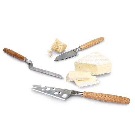 Con el juego de cuchillos para queso Oslo, tienes todos los cuchillos que necesitas para servir una deliciosa tabla de quesos. Ya sea que tengas un Brie cremoso o un parmesano extremadamente duro, con estos cuchillos para queso podrás cortar todo tipo de queso. Los tiradores de madera de roble añaden un aspecto auténtico. Esto hace que cada tabla de quesos que sirvas sea un poco más especial.