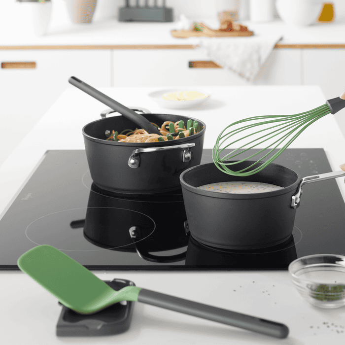 Además, su mango de PBT es resistente a altas temperaturas hasta 180ºC, lo que te permite dejarlo reposar en sartenes u ollas calientes sin que sufra ningún daño.