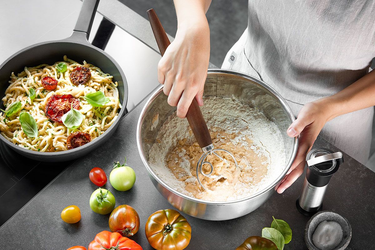 NEDO no es un batidor cualquiera. Sus robustas asas de acero inoxidable hacen que remover y mezclar incluso masas pesadas sea un placer y garantizan resultados perfectos en poco tiempo. A quien quiera preparar pan esponjoso, pasta fresca, pasteles aromáticos y deliciosas tortitas le encantará NEDO.