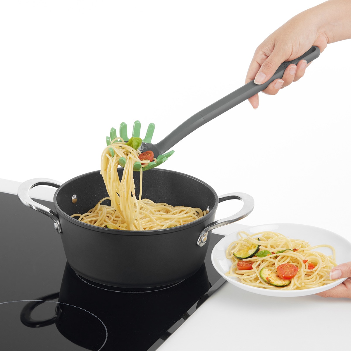El utensilio perfecto para servir todo tipo de pasta larga de forma sencilla y sin riesgo de rayaduras. Esta cuchara para pasta está diseñada para servir desde espaguetis hasta parpadelle sin que se escurran.