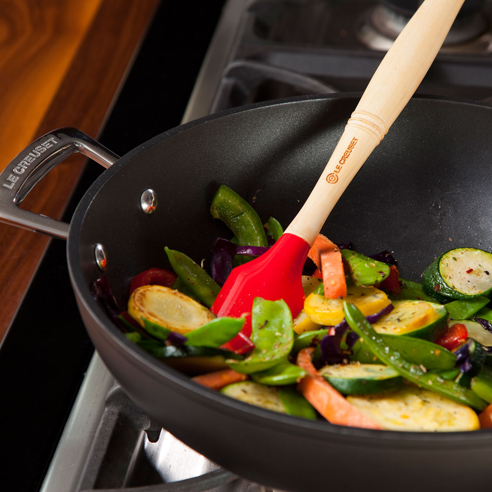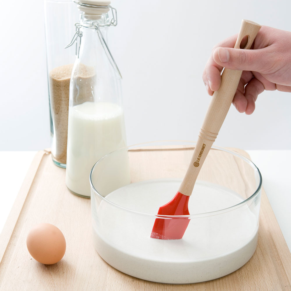 Las espátulas son lo suficientemente resistentes como para soportar años de uso diario. El cabezal de silicona no absorbe los colores, ni los sabores ni los olores de los alimentos. Disponible en una variedad de formatos y colores para complementar sus utensilios de cocina de Le Creuset.