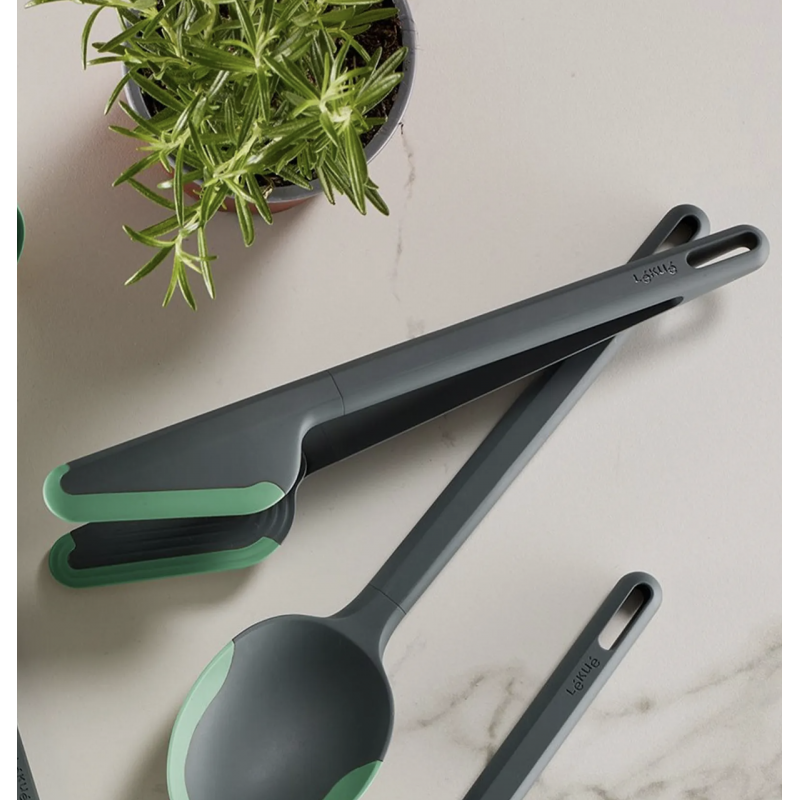 Diseñadas para que duren mucho más tiempo sin deteriorarse, estas pinzas son resistente a altas temperaturas de la punta al mango. Fabricadas en Silicona Platino, un material que resiste temperaturas de hasta 220ºC, para reforzar las zonas con mayor contacto con el calor y mayor desgaste. El PBT es un material rígido e higiénico, que resiste hasta 180ºC para que el utensilio pueda reposar sobre superficies calientes como los bordes de las ollas, mientras estás cocinando. Apto para lavavajillas.