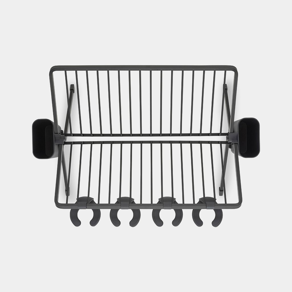 ESTE ESCURREPLATOS PLEGABLE CON BANDEJA DE CUENTA CON UN AMPLIO ESPACIO PARA PLATOS, CAZOS, SARTENES Y VASOS. EL RECIPIENTE PARA CUBIERTOS Y UTENSILIOS ES EXTRAÍBLE, LO QUE HACE MÁS FÁCIL PLEGAR EL ESCURREPLATOS Y GUARDARLO. UN ESCURREPLATOS REALMENTE INGENIOSO, TAN BONITO QUE PUEDES DEJARLO DE FORMA PERMANENTE EN TU COCINA, PERO TAMBIÉN PUEDES GUARDARLO SIN QUE OCUPE APENAS ESPACIO.