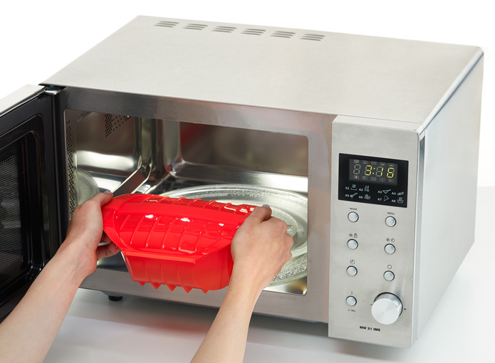 Cocina al vapor en el microondas alimentos de mayor tamaño, cremas, guisos, sopas... en poco tiempo, conservando los nutrientes y sabor de los alimentos.