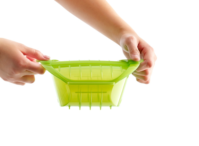 Cocina al vapor en el microondas alimentos de mayor tamaño, cremas, guisos, sopas... en poco tiempo, conservando los nutrientes y sabor de los alimentos.