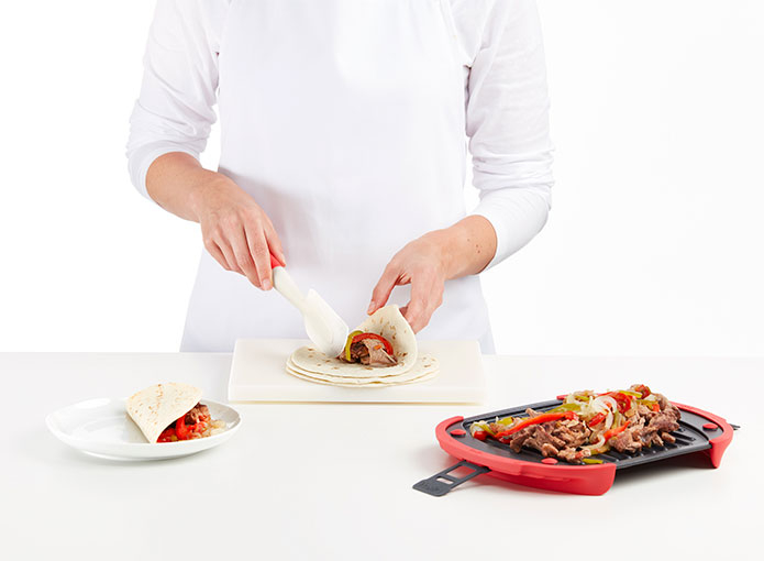 Podrás preparar de 3 a 4 raciones gracias a esta nueva versión más grande, que cuenta con un 60% más de superficie útil que el Microwave Grill original (1-2p).