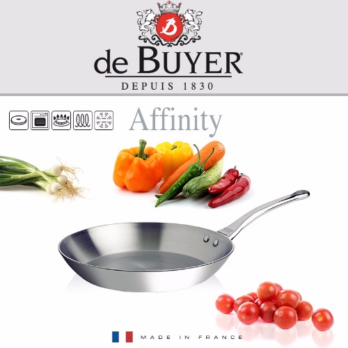 La sartén de acero inoxidable multicapa Affinity se calienta rápidamente y es ideal para freír, asar y flamear alimentos.