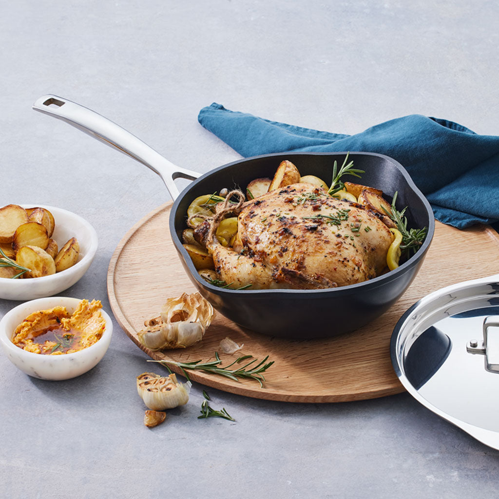 Cocina más sana: nuestra resistente superficie antiadherente libre de PFOA soporta toda clase de cocciones, incluso sin aceite.
