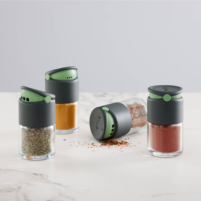 Este bote para especias tiene doble apertura para poder servir todo tipo de especias. La función espolvorear es perfecta para especias en polvo como cúrcuma, curry o canela. Mientras que la función dosificar es perfecta para hojas más grandes como orégano, perejil o comino; o para servir más cantidad.