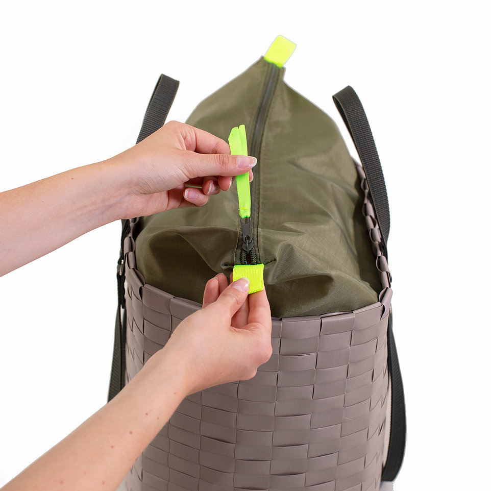 Trenzado a mano y fabricado en un 70% de plástico reciclado.