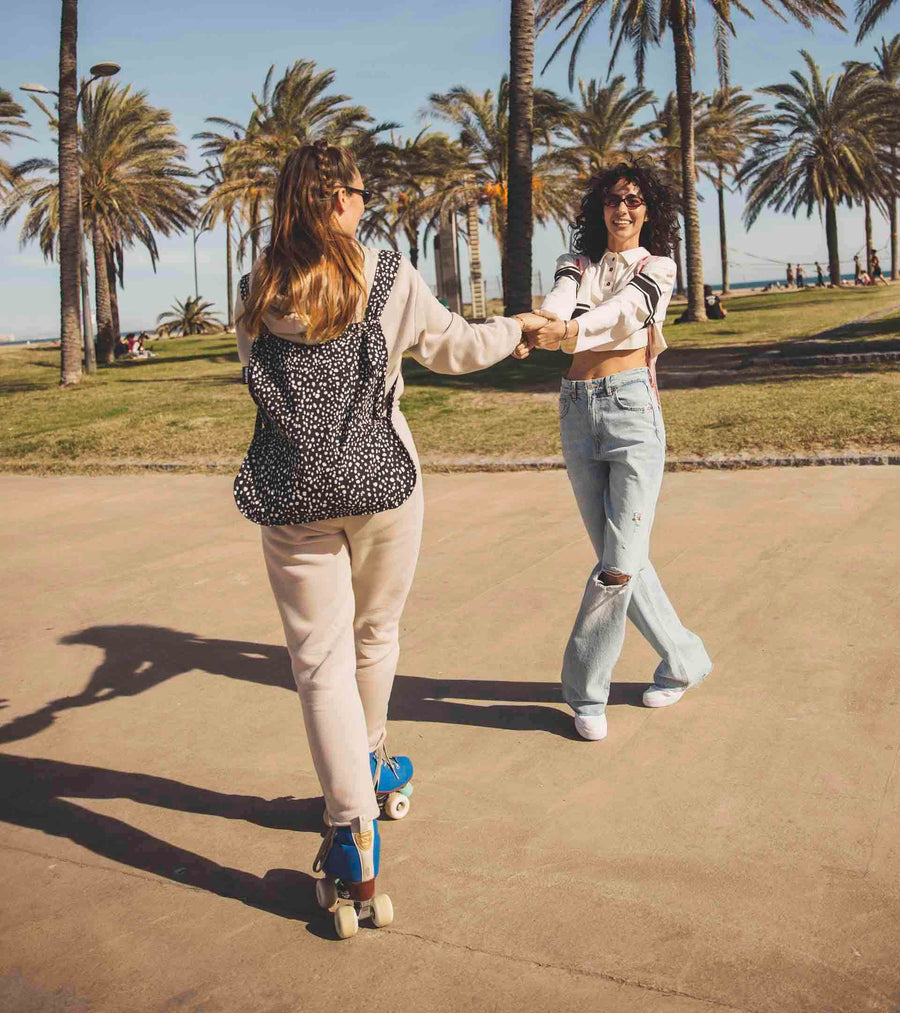 NOTABAG ES LA COMBINACIÓN INTELIGENTE DE BOLSO Y MOCHILA. SE TRANSFORMA CON UN SOLO TIRÓN DE LAS CORREAS, PARA QUE PUEDAS PONÉRTELO EN LA ESPALDA Y TENER LAS MANOS LIBRES.