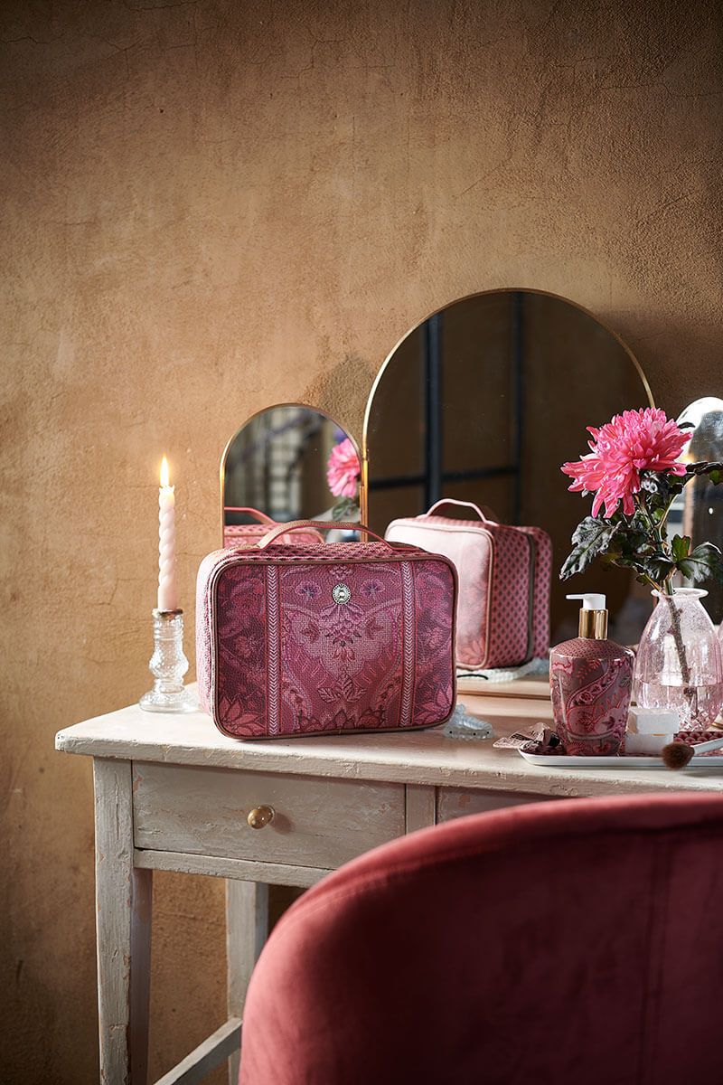 Con este neceser de la colección Kyoto Festival siempre tendrás a mano tus productos de belleza favoritos. El estuche de belleza está decorado con una variación única de imaginativas flores y hojas de chintz y consta de dos grandes compartimentos.