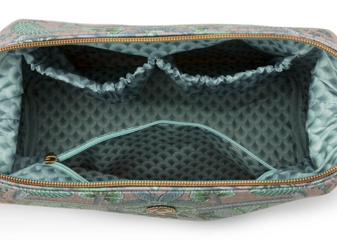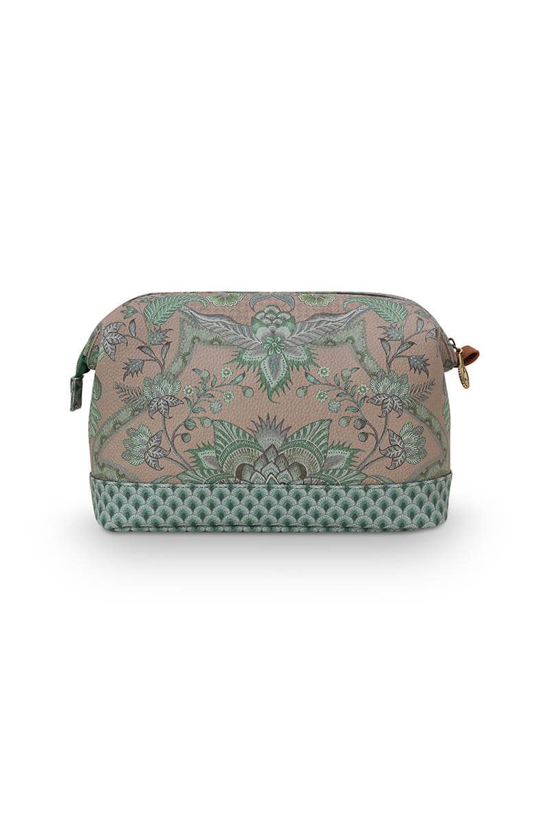 Con este neceser grande de la colección Kyoto Festival siempre tendrás a mano tus productos de belleza favoritos. El neceser está decorado con una variación única de imaginativas flores y hojas de chintz y tiene un patrón de arcos estilizados en la parte inferior. El neceser tiene un compartimento grande y varios compartimentos pequeños y está rematado en su interior con un diseño de arcos estilizados.