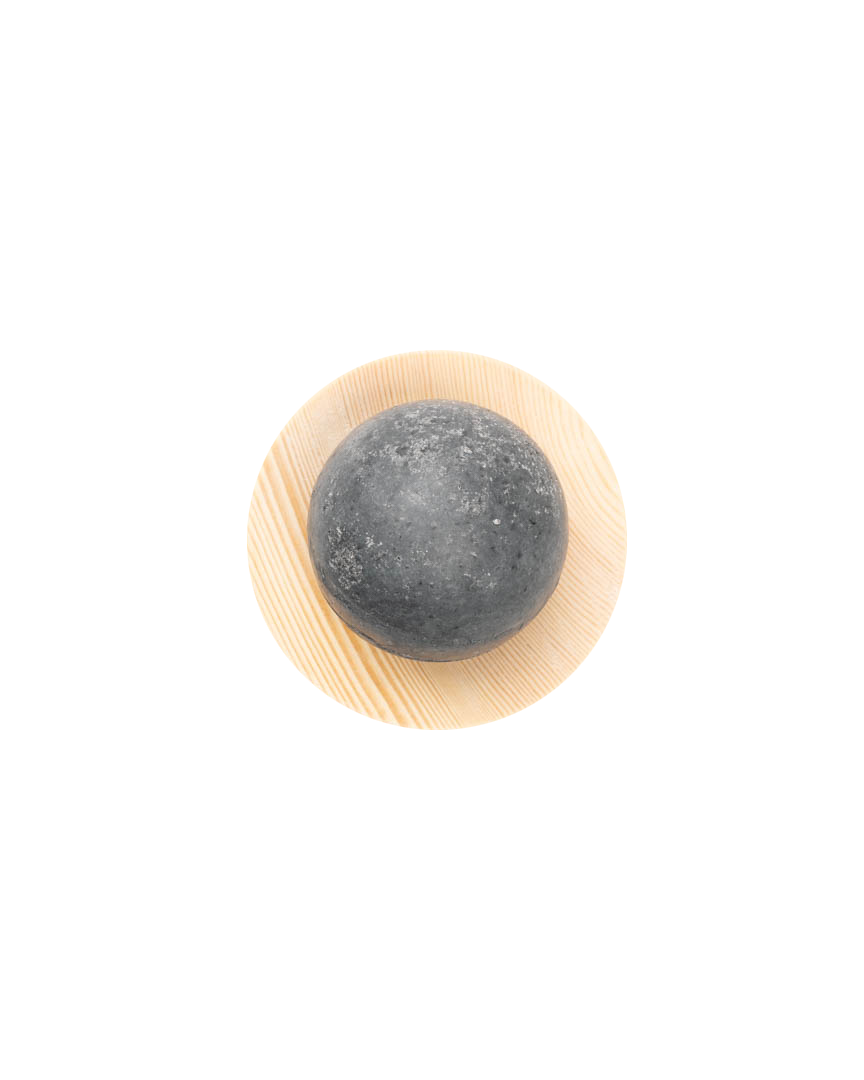 Un jabón redondo de uso diario. Contiene sal marina, polvo de arándano y aceites esenciales aromáticos de abeto negro.