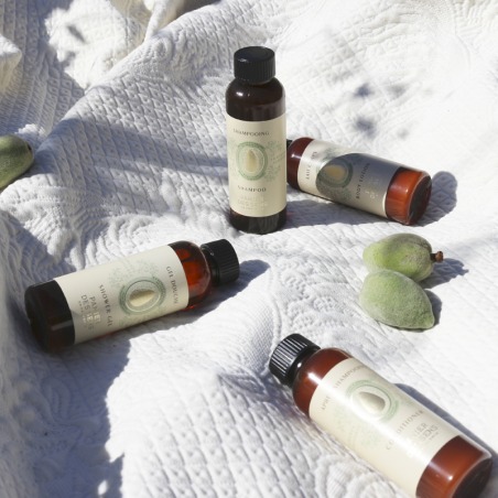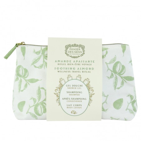 Este estuche de algodón reutilizable y práctico de llevar reúne los esenciales de belleza esenciales enriquecidos con extracto de almendras dulces en tamaño de viaje para llevar contigo a todas partes. Todos los productos están testados bajo control dermatológico.
