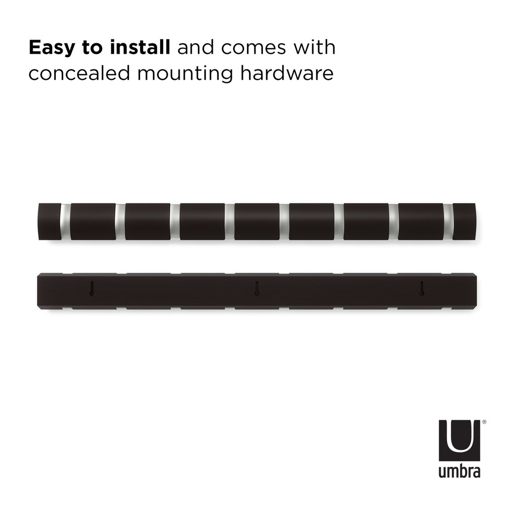 FLIP ES UN PERCHERO MODERNO PERO FUNCIONAL, MONTADO EN LA PARED, QUE CUENTA CON GANCHOS RETRÁCTILES QUE LE PROPORCIONARÁN UN AMPLIO ESPACIO PARA COLGAR DONDE MÁS LO NECESITA. FLIP PUEDE ACOMODAR UNA CANTIDAD SORPRENDENTEMENTE GRANDE DE ARTÍCULOS. GRACIAS AL PERFIL ELEGANTE Y AL HARDWARE DE MONTAJE OCULTO, FLIP SE MONTA PERFECTAMENTE EN PRÁCTICAMENTE CUALQUIER PARED Y OFRECE UN ESTILO QUE SE VE MUY BIEN EN CUALQUIER ENTRADA O VESTÍBULO, INDEPENDIENTEMENTE DE CUÁN GRANDE O PEQUEÑO SEA. FLIP TAMBIÉN ES IDEAL PARA COLGAR ROPA Y OTRAS PRENDAS EN LAS HABITACIONES, O TOALLAS Y BATAS EN LOS BAÑOS ... INCLUSO PUEDE USAR FLIP EN UNA OFICINA O DORMITORIO.