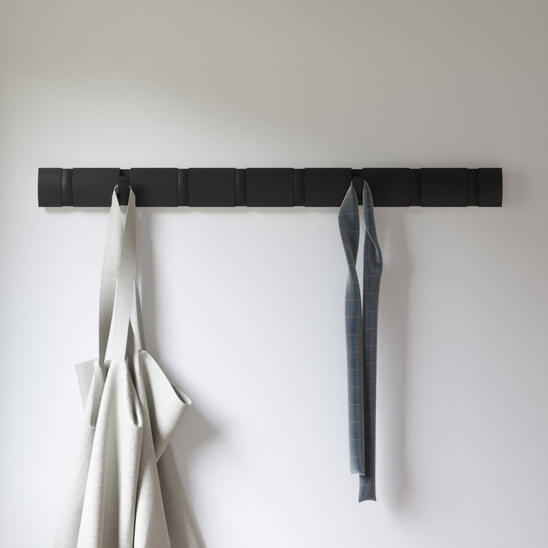 FLIP ES UN PERCHERO MODERNO PERO FUNCIONAL, MONTADO EN LA PARED, QUE CUENTA CON GANCHOS RETRÁCTILES QUE LE PROPORCIONARÁN UN AMPLIO ESPACIO PARA COLGAR DONDE MÁS LO NECESITA. FLIP PUEDE ACOMODAR UNA CANTIDAD SORPRENDENTEMENTE GRANDE DE ARTÍCULOS. GRACIAS AL PERFIL ELEGANTE Y AL HARDWARE DE MONTAJE OCULTO, FLIP SE MONTA PERFECTAMENTE EN PRÁCTICAMENTE CUALQUIER PARED Y OFRECE UN ESTILO QUE SE VE MUY BIEN EN CUALQUIER ENTRADA O VESTÍBULO, INDEPENDIENTEMENTE DE CUÁN GRANDE O PEQUEÑO SEA. FLIP TAMBIÉN ES IDEAL PARA COLGAR ROPA Y OTRAS PRENDAS EN LAS HABITACIONES, O TOALLAS Y BATAS EN LOS BAÑOS ... INCLUSO PUEDE USAR FLIP EN UNA OFICINA O DORMITORIO.