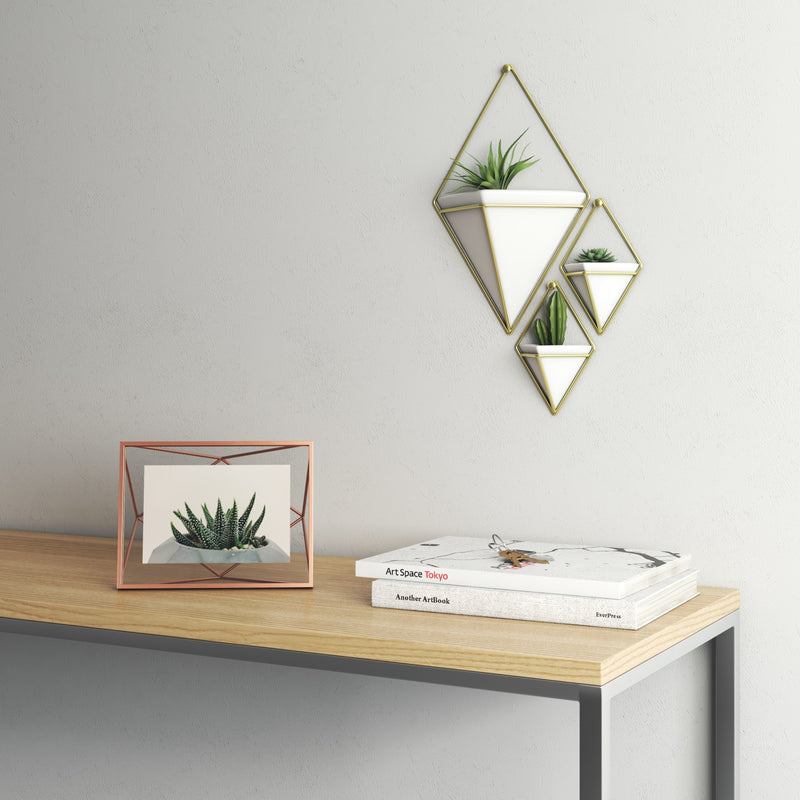 Prisma es un marco geométrico único y contemporáneo, destacando cómodamente entre dos paneles de vidrio resistentes, el marco crea un efecto flotante y agrega un grado de dimensión y profundidad. El marco Prisma puede orientarse en una multitud de arreglos, incluidos colgar o sentarse, vertical u horizontal, y colocarse en una mesa o montarse en la pared. Este marco de alambre prismático se puede integrar fácilmente en cualquier estilo de decoración.
