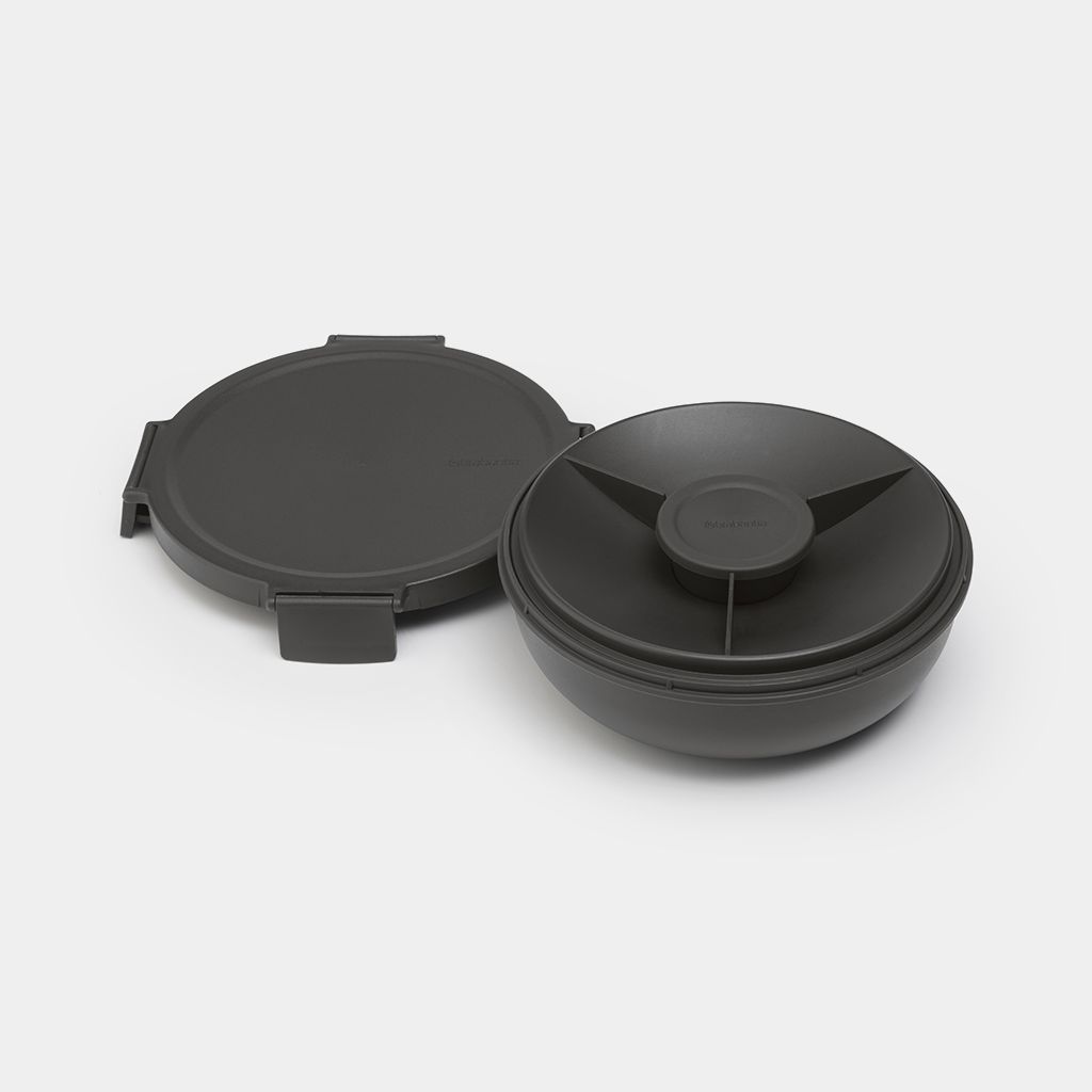 Con el bol para ensalada de 1,3L Make & Take de Brabantia, prepararte una ensalada para comer en cualquier lugar es fácil y divertido. Este súper bol dispone de un compartimento para los condimentos y un recipiente para el aliño que sirve de tapón. Saca el recipiente y agita suavemente el bol para mezclar los ingredientes, aliña y ¡a disfrutar! Para súper ensaladas.