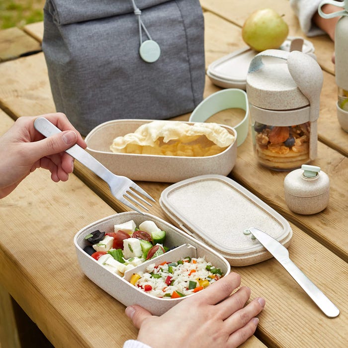 La gama To Go Organic está fabricada con un porcentaje inferior de plástico, utilizando materiales orgánicos. El material principal es una combinación de fibra de madera y polipropileno, uno de los plásticos más usados; ¡es 100% reciclable y perfecto para el contacto alimentario! La fibra de madera utilizada proviene de los desechos generado por la actividad maderera en el proceso de transformación de los bosques a bienes de consumo. Estos desechos de la madera, a través de un proceso de triturado, filtrado y esterilizado, son mezclados con el propileno creando este nuevo material. Conseguimos un material de alta calidad, totalmente seguro y que cumple con las normativas más estrictas. Descubre más información sobre los materiales de la colección To Go Organic.