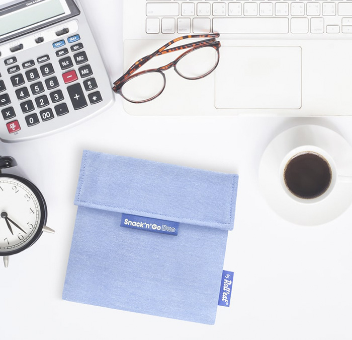 La bolsita porta snack de dos bolsillos con la medida perfecta para llevar el sandwich o snack. Es reutilizable, muy fácil de limpiar, y ocupa tan poco espacio que la puedes llevar siempre contigo.