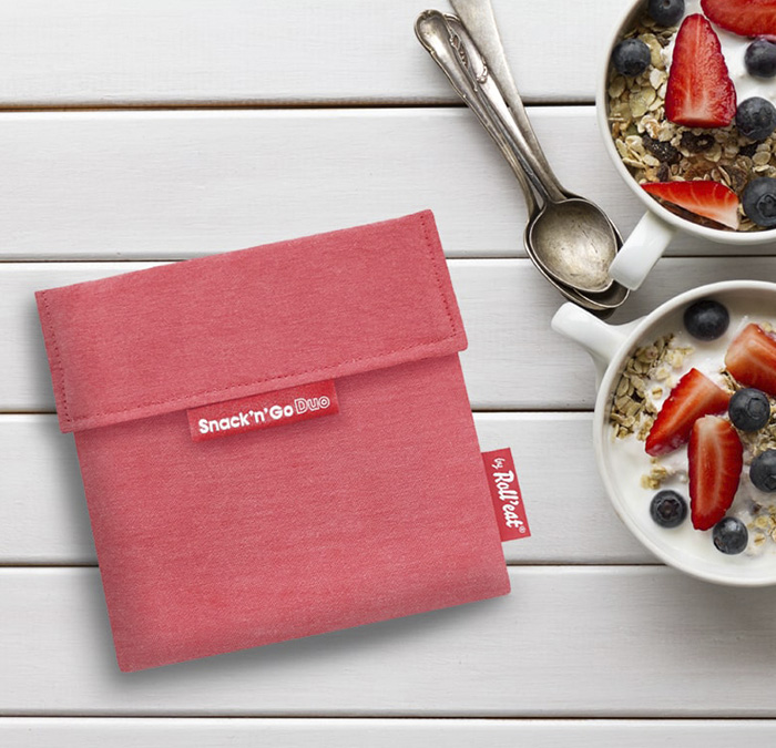 LA BOLSITA PORTA SNACK DE DOS BOLSILLOS CON LA MEDIDA PERFECTA PARA LLEVAR EL SANDWICH O SNACK. ES REUTILIZABLE, MUY FÁCIL DE LIMPIAR, Y OCUPA TAN POCO ESPACIO QUE LA PUEDES LLEVAR SIEMPRE CONTIGO.