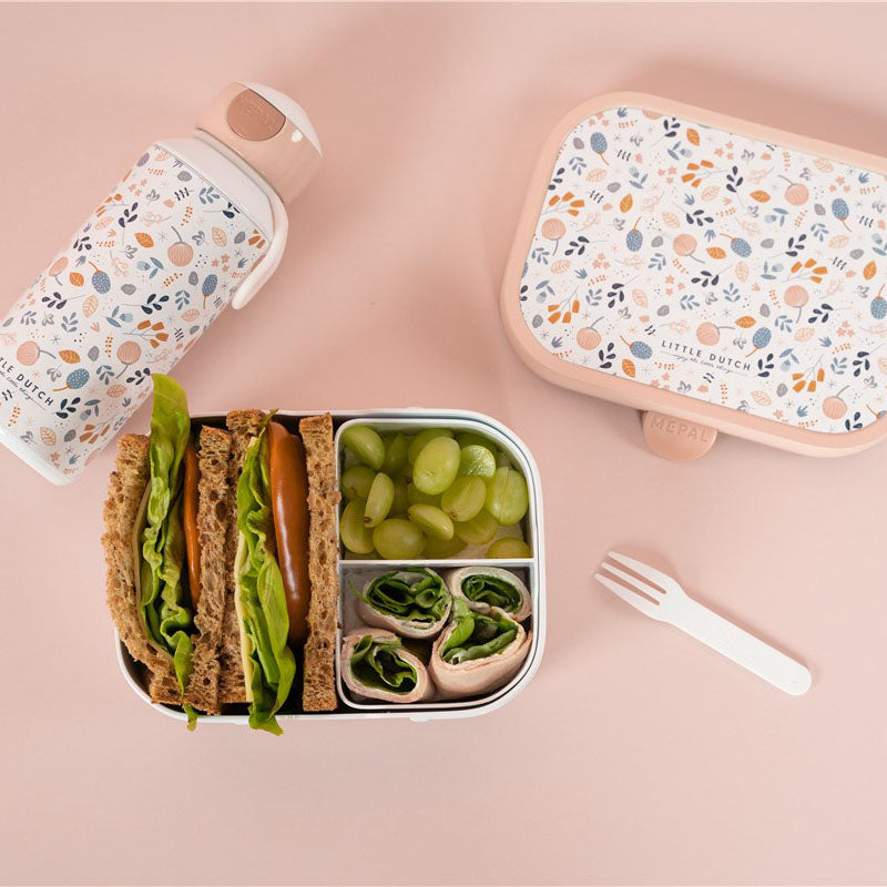 Opte por la variación con la fiambrera con estampado Spring Flowers de Little Dutch, que incluye una caja bento extraíble. Las posibilidades de un buen almuerzo para niños son casi infinitas. ¿Pan fresco y fruta colorida? ¿O una merienda salada para la escuela? ¿Trozos de queso, salchichas, nueces o frutos secos? ¡Elija y mezcle al contenido de su corazón y manténgalo agradable, fácil y bien separado! Gracias a la bandeja bento, la fiambrera se divide en diferentes compartimentos. Con dos compartimentos separados, el bento siempre mantiene todo en la lonchera maravillosamente fresco. ¿Prefieres 'solo' cuatro sándwiches? ¡Retire la caja bento y tendrá mucho espacio! Por supuesto, la fiambrera y la caja bento simplemente se pueden poner en el lavavajillas después de su uso.