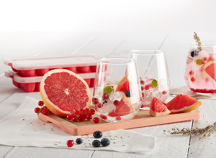 Transforma un momento cotidiano y diviértete incluso con los más pequeños de la casa. Estas cubiteras con tapa son perfectas para congelar cubitos de agua y enfriar todo tipo de bebidas, tés fríos y cafés con hielo. Para un refresco saludable, puedes preparar aguas saborizadas con fruta e incorporar cubitos con trozos de fruta, hojas de menta, bolitas de pimienta o flores de manzanilla. Conseguirás toque de sabor y un efecto ¡Wow!