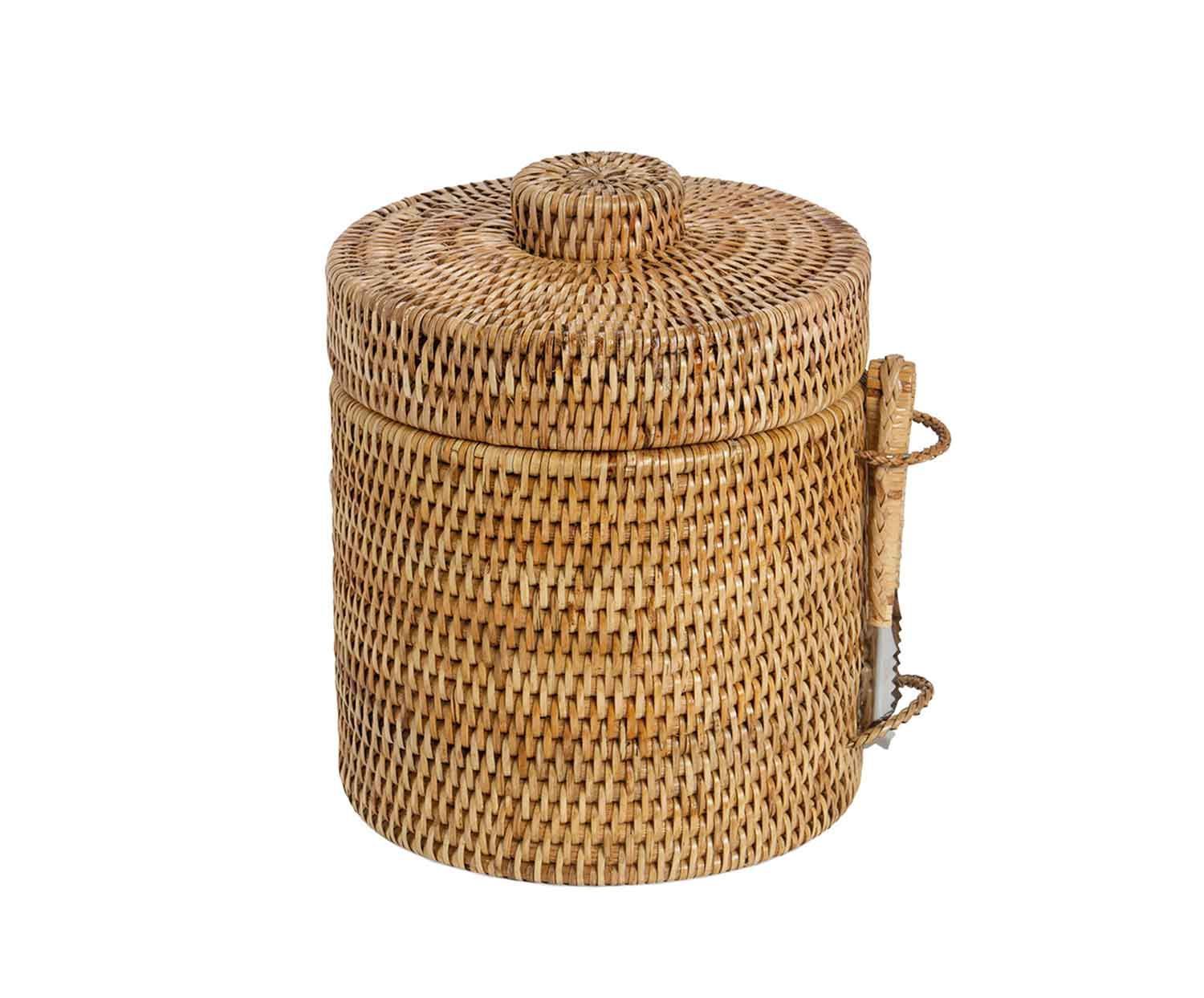 Este cubitera de ratán es el accesorio de mesa imprescindible de todo terraceo. Ideal para colocar los cubitos y mantenerlos frescos durante horas, listos para enfriar la copa en cualquier momento. Incorpora unas pinzas de metal y un soporte para sujetarlas y la tapa permite conservar mejor la temperatura fría en el interior. Con interior de plástico para vaciarlo y limpiarlo cómodamente y sin dañar la fibra natural del ratán.