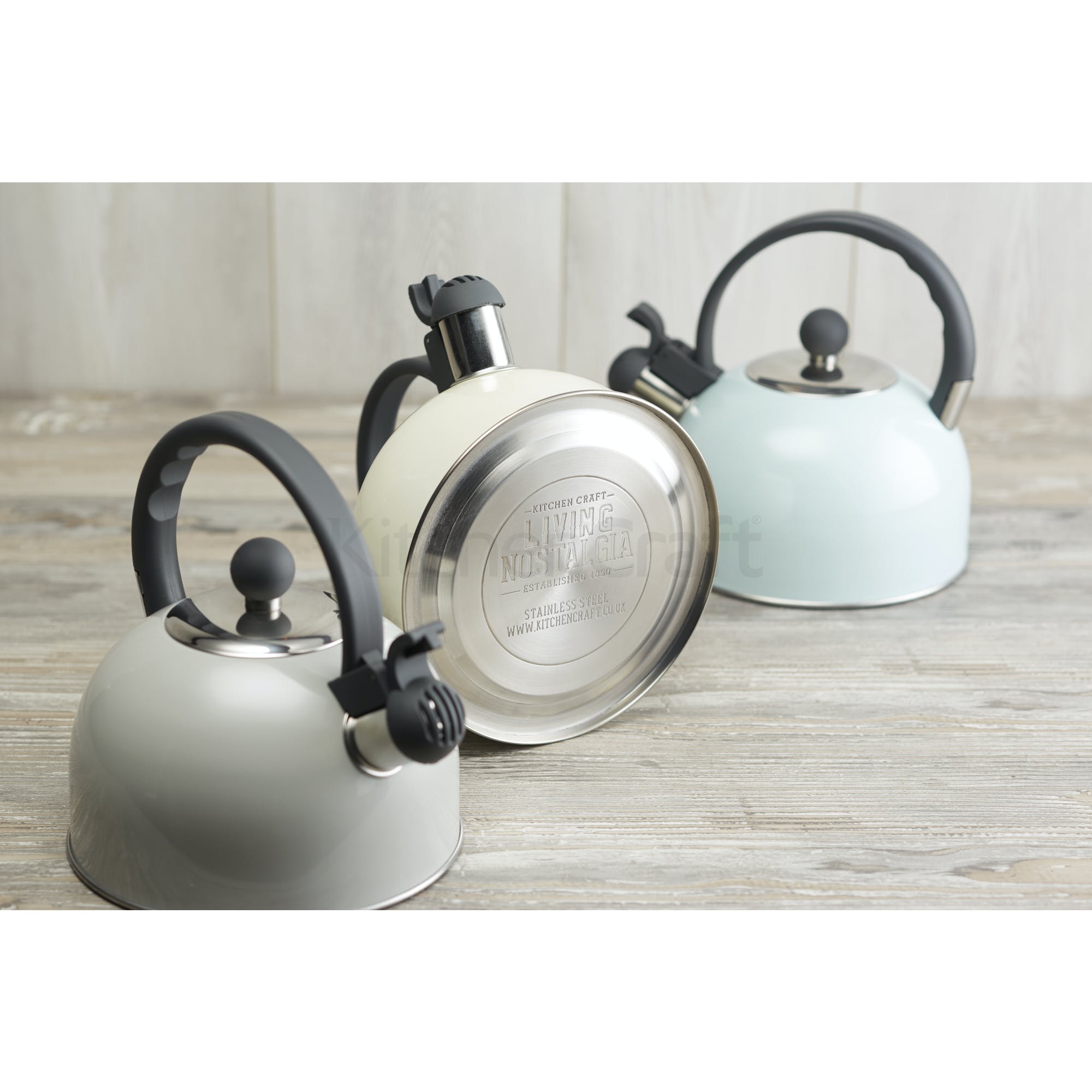 Maravillosamente vintage, este diseño atemporal, simple y clásico es perfecto para placas de cocina. Con un mango suave que se mantiene fresco y un pico con silbido, este hervidor con silbido azul vintage de 1,4 litros es ideal para preparar una taza de té durante todo el día.