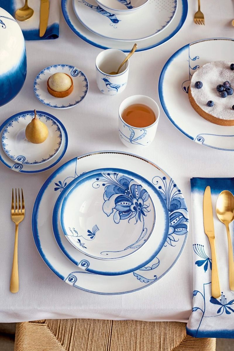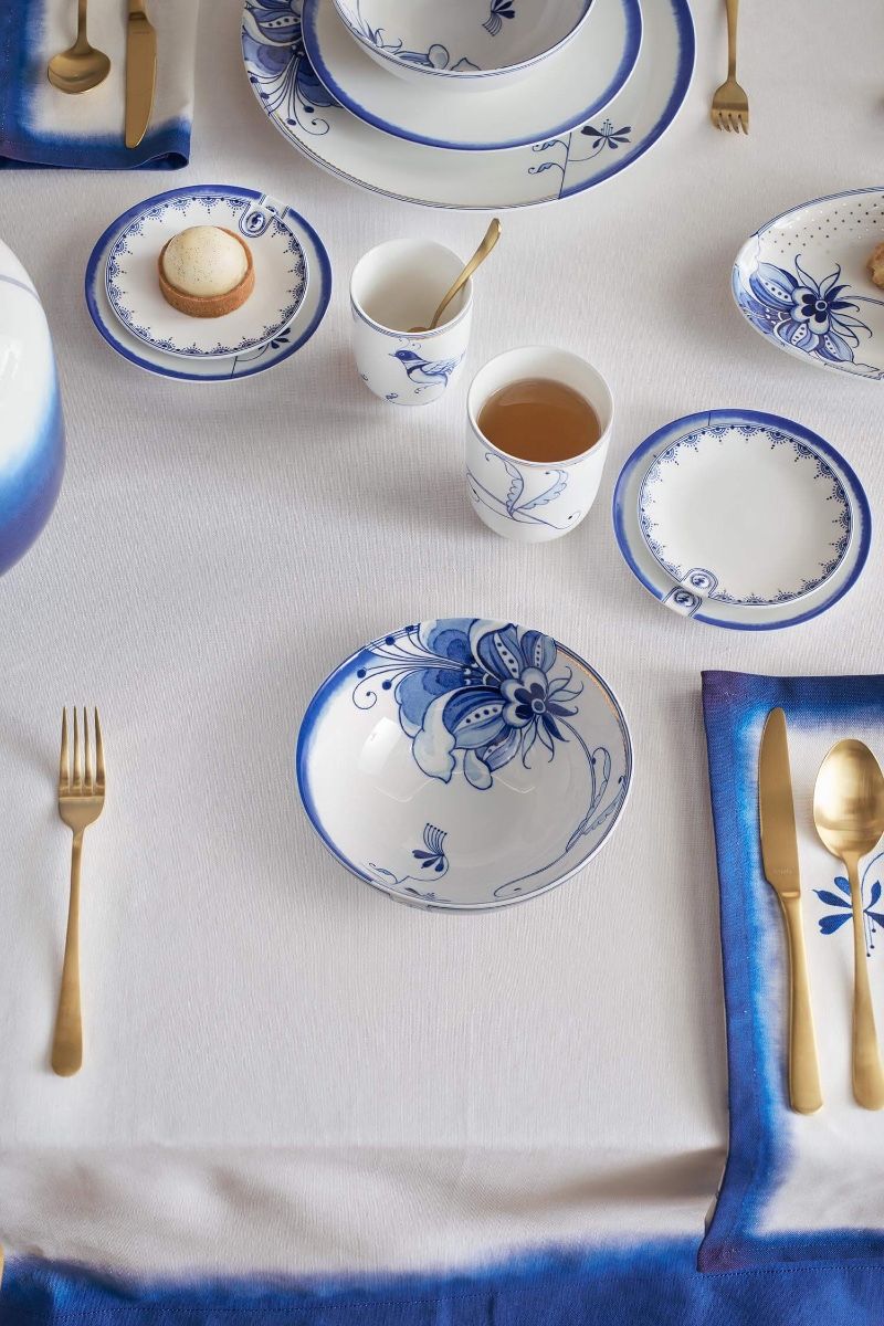Fabricado 100 % en porcelana blanca de grado A. Debido a sus decoraciones doradas, este material no es apto para microondas ni lavavajillas. Se recomienda lavarlo a mano únicamente con una solución suave de detergente líquido.
