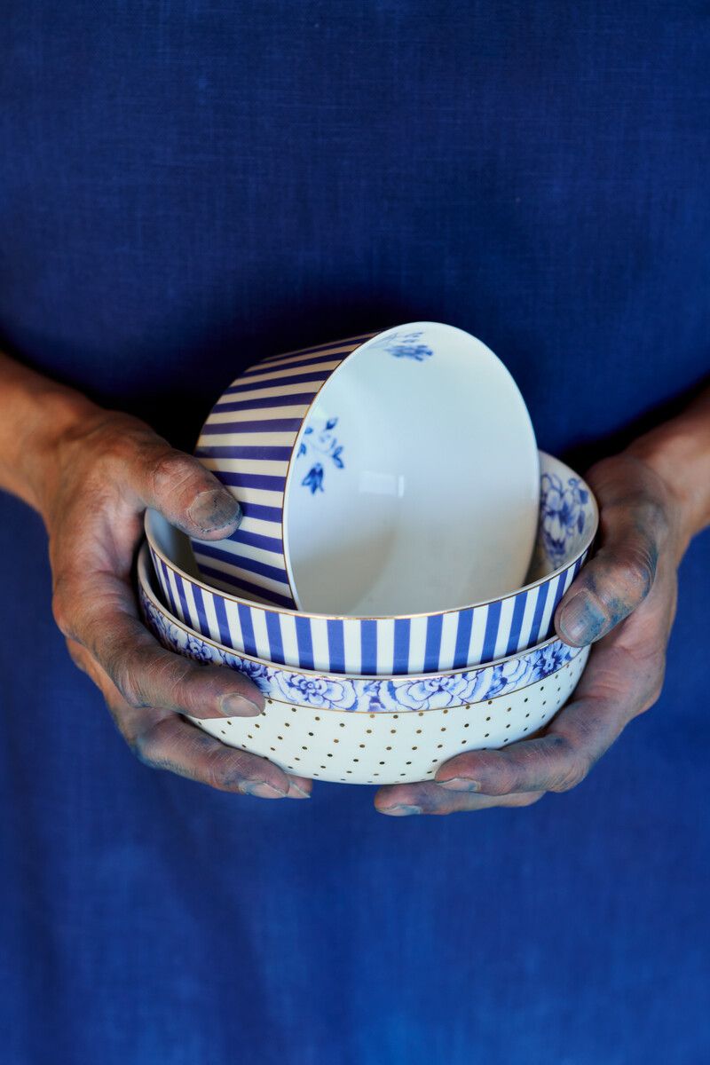 Este plato forma parte del juego de porcelana Royal White. Royal White es una porcelana refinada con sutiles detalles pintados de azul y elementos dorados.