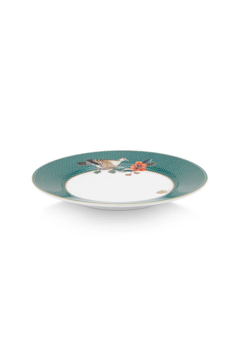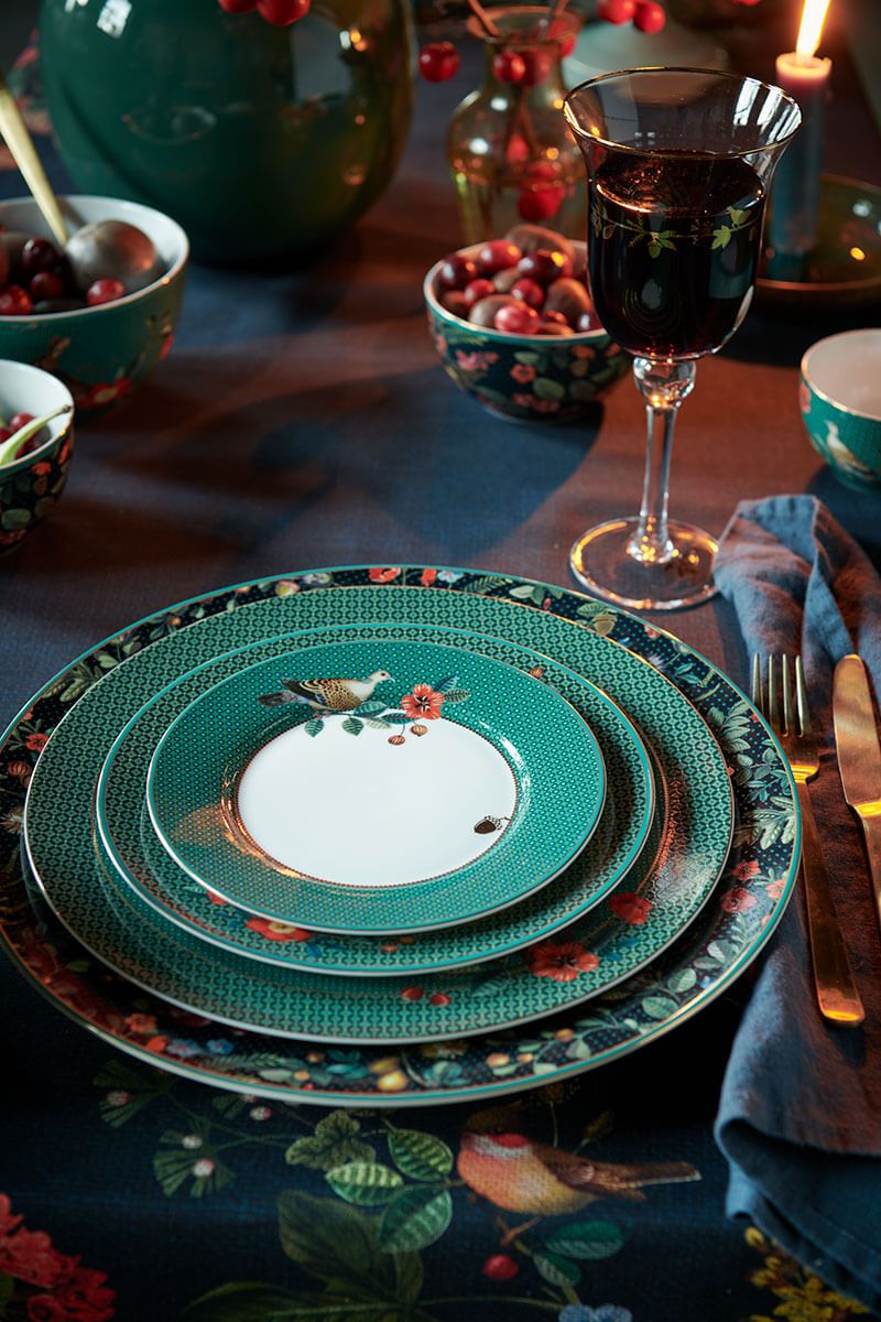 Prepara tu mesa para el invierno con este plato de pastelería de la colección Winter Wonderland. El plato está decorado con elementos invernales y una paloma.