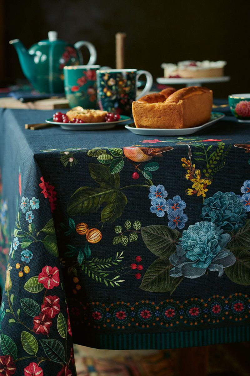 Una taza de porcelana azul XL de nuestra gama Winter Wonderland de vajilla de porcelana. Decorado todo alrededor con flores de temporada, bellotas y un pájaro. Cada taza está decorada con elementos lujosos, como el acabado dorado del asa. Perfecto para una taza de café o té caliente durante el día.