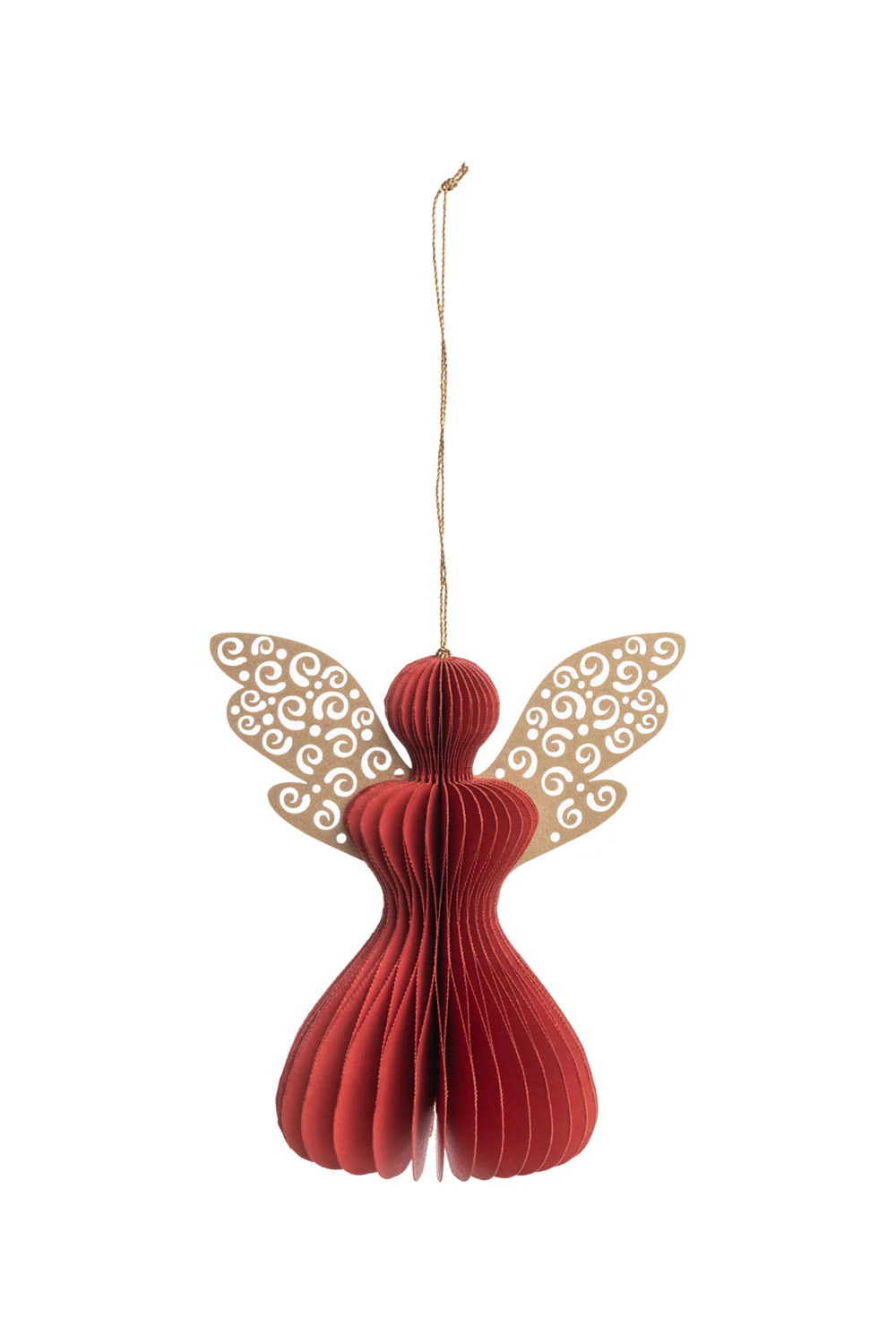 Cuélguelo en el árbol de Navidad, en la ventana o en el marco de una puerta para crear un ambiente festivo. La delicada forma del ángel añade un toque de encanto a su hogar. Este adorno de papel no solo es perfecto para la Navidad, sino también como elemento decorativo para ocasiones especiales y celebraciones. Deje que el brillo celestial de este adorno de ángel llene su espacio de magia. Dimensiones: 11,5 x 7,5 x 13 cm. Material: Papel.